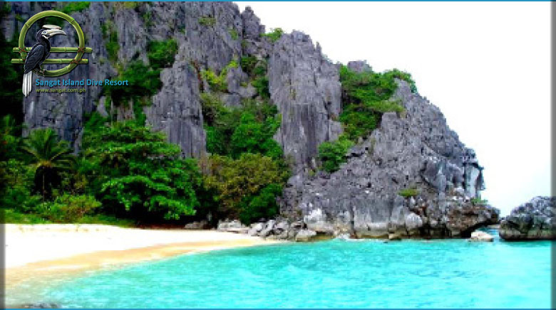 Malajon Island – commonly referred to as Black Island – resides approximately 2 hours north-east of Sangat. Malajon’s most impressive feature is a huge limestone mountain which crumbles into a long stretch of white sand beach along the island’s western coast.